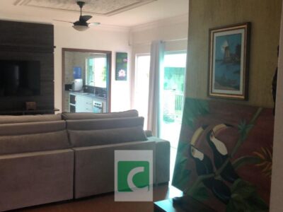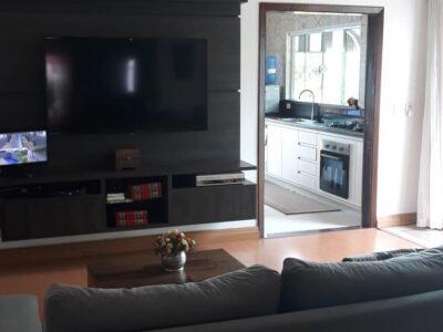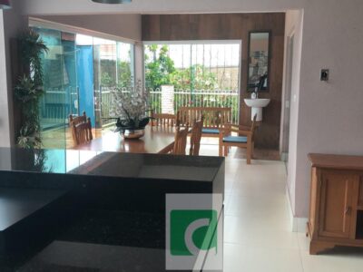 Sala ampla, bem iluminada. Este espaço convida à contemplação e à convivência integrada com a sala de jantar e churrasqueira, perfeto para reuniões familiares.